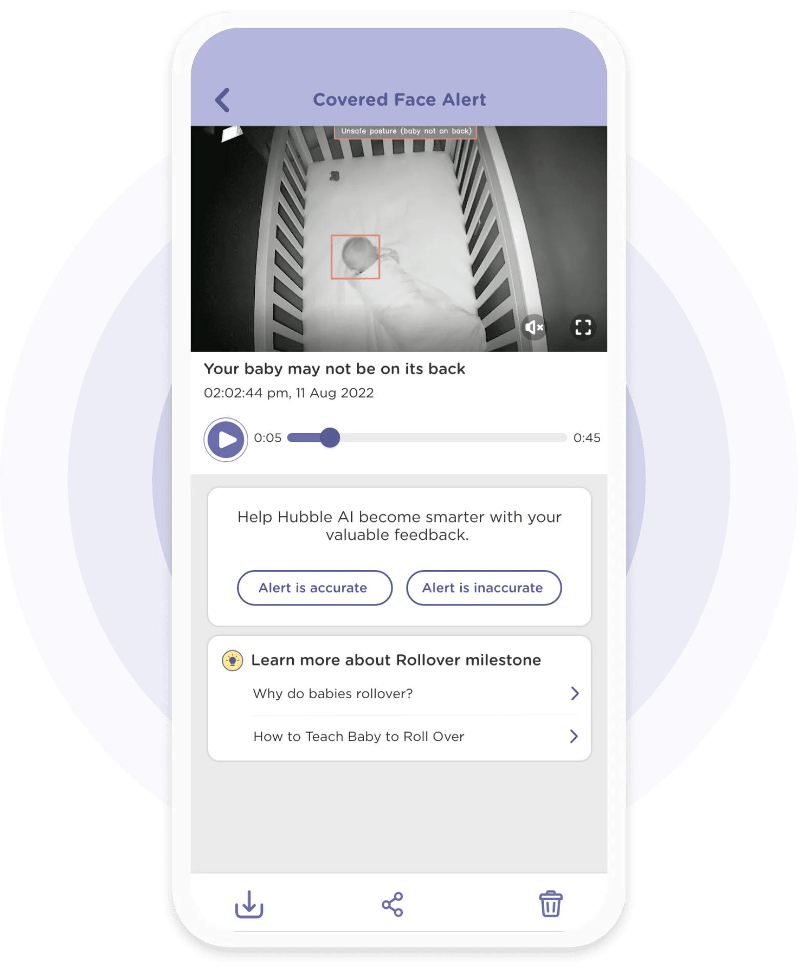 Receba alertas se seu bebê não estiver de costas ou tentando rolar, ajudando você a verificá-lo quando necessário.
