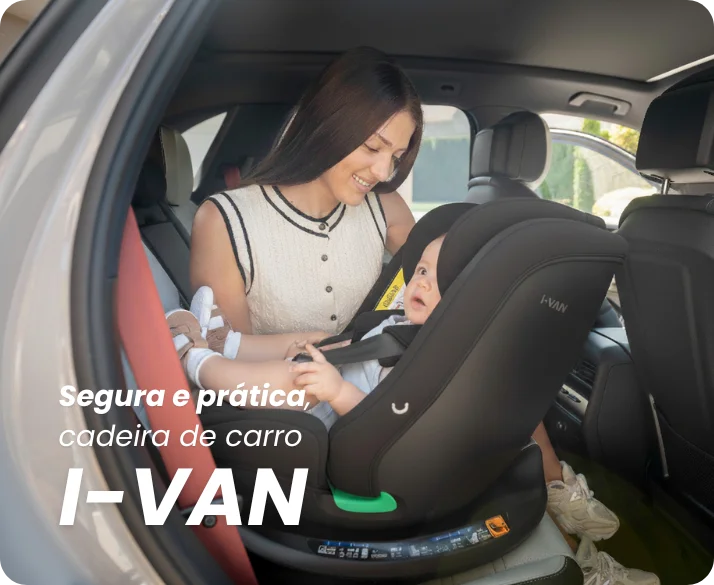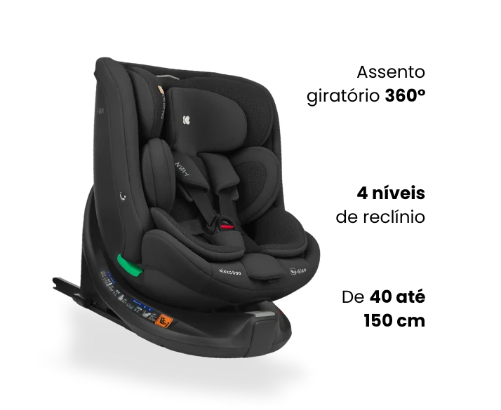 Assento giratório 360° facilita o dia a dia ao colocar ou retirar a criança.