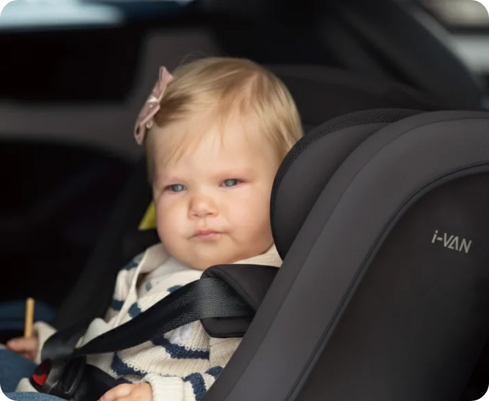 Cadeira para Auto Isofix I-Van Kikka boo conta com certificação ONU R129/03 e TÜV SÜD, sistema ISOFIX e Top Tether, proteção lateral SPS e cinto de 5 pontos.